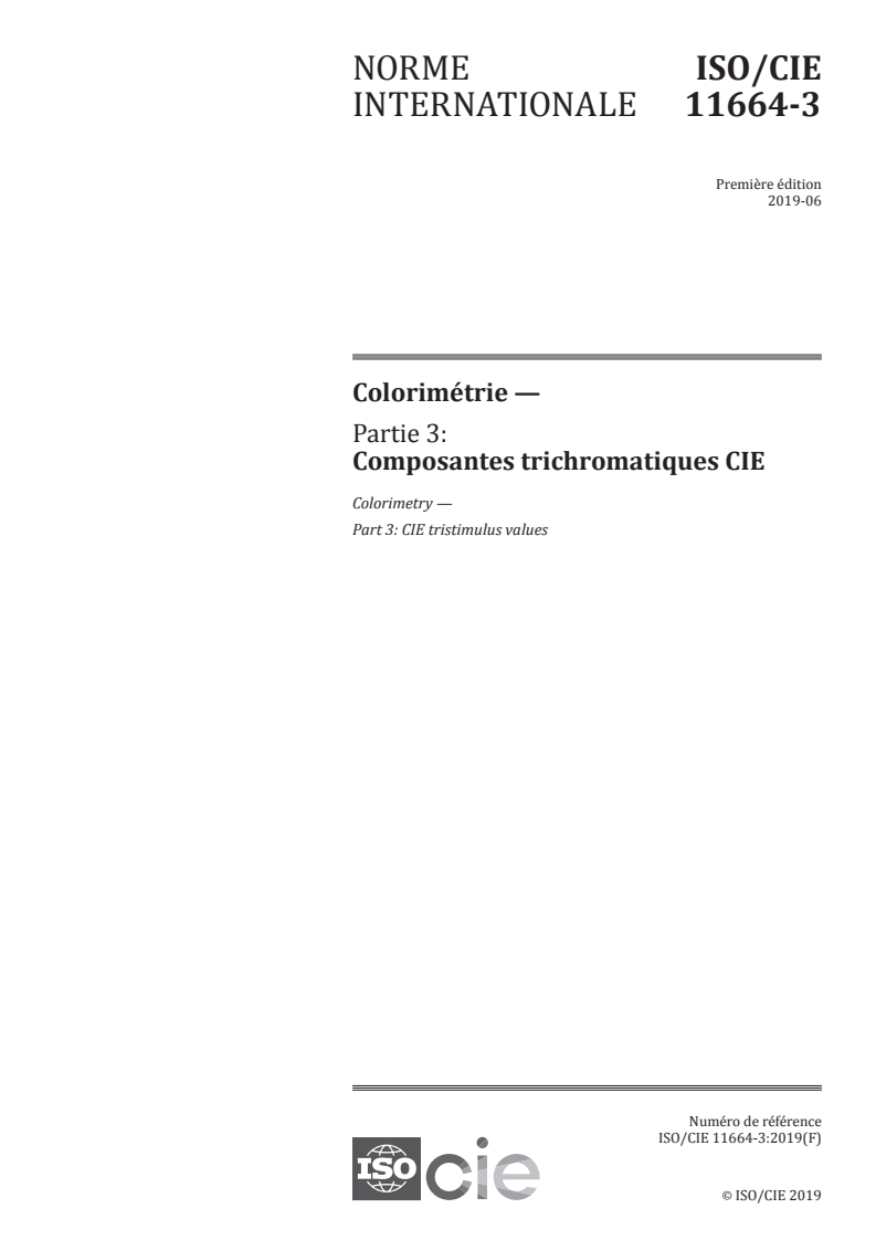 ISO/CIE 11664-3:2019 - Colorimétrie — Partie 3: Composantes trichromatiques CIE Released:6/12/2019