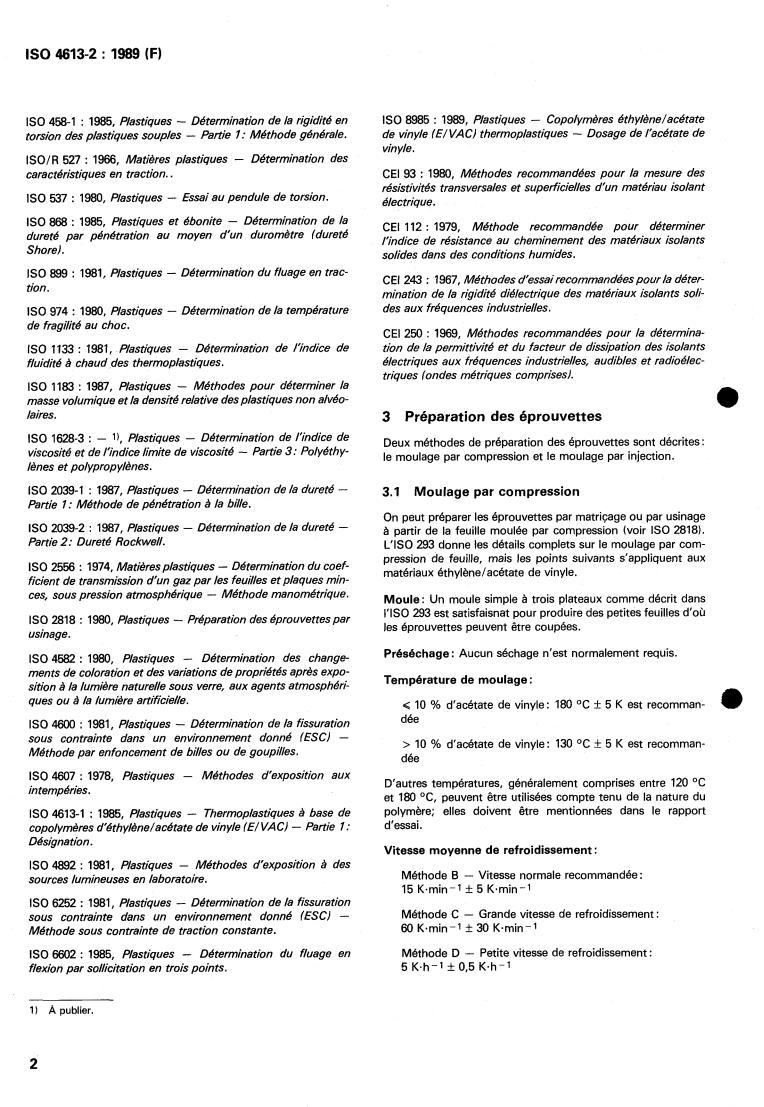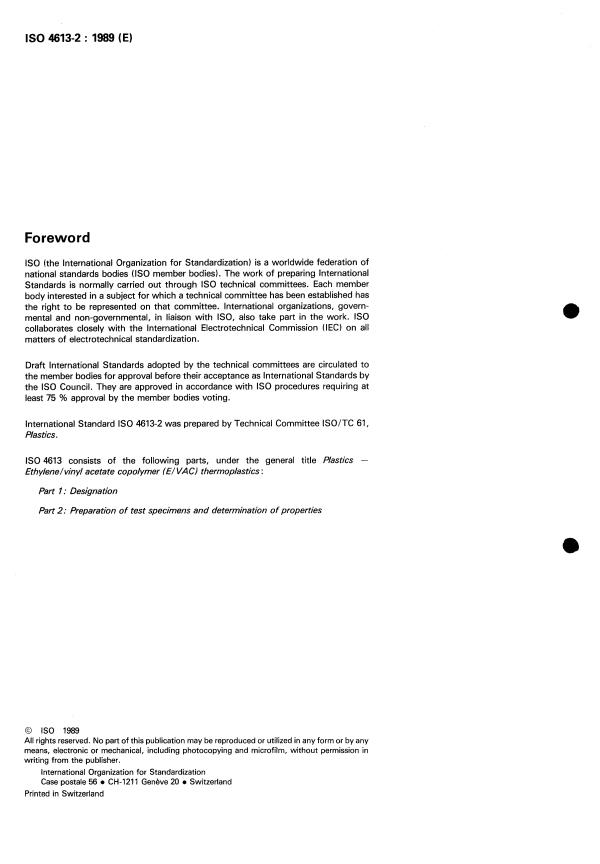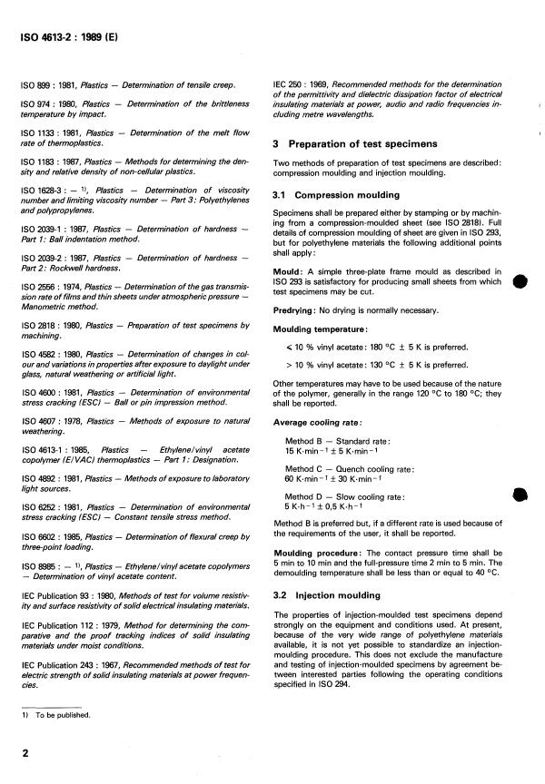 ISO 4613-2:1989 - Plastics — Ethylene/vinyl acetate copolymer (E/VAC) thermoplastics — Part 2: Preparation of test specimens and determination of properties Released:10/19/1989