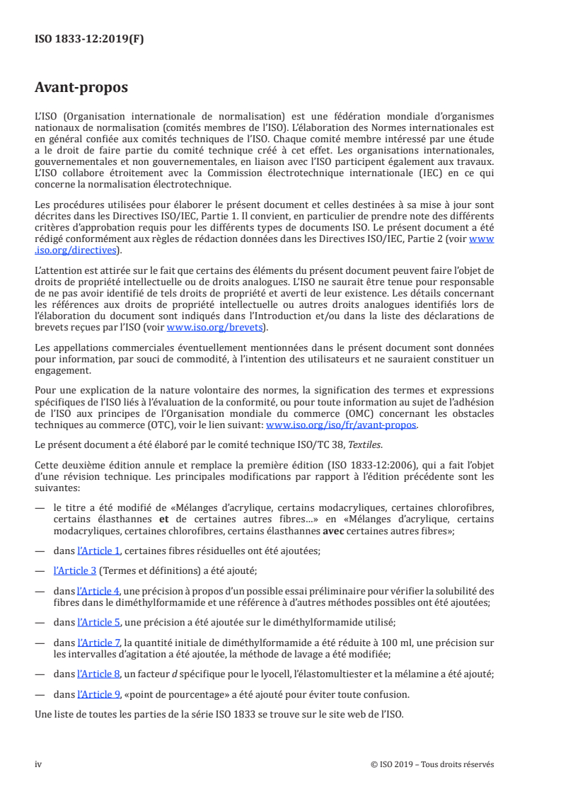 Cette deuxième édition annule et remplace la première édition (ISO 1833-12:2006), qui a fait l’objet
