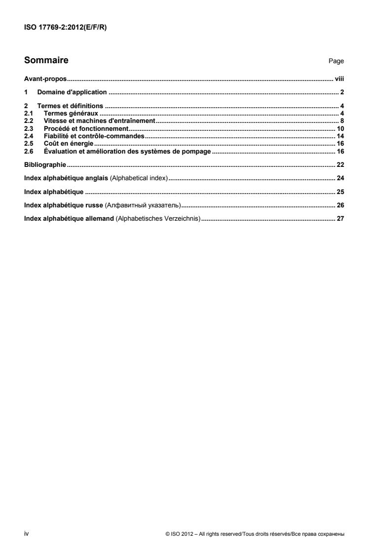 Keywords: ISO 17769-2, pumping system standard, pump terminology, liquid pumps, pump installation, rotodynamic pumps, positive displacement pumps, letter symbols, pump units, energy cost, pump system assessment.