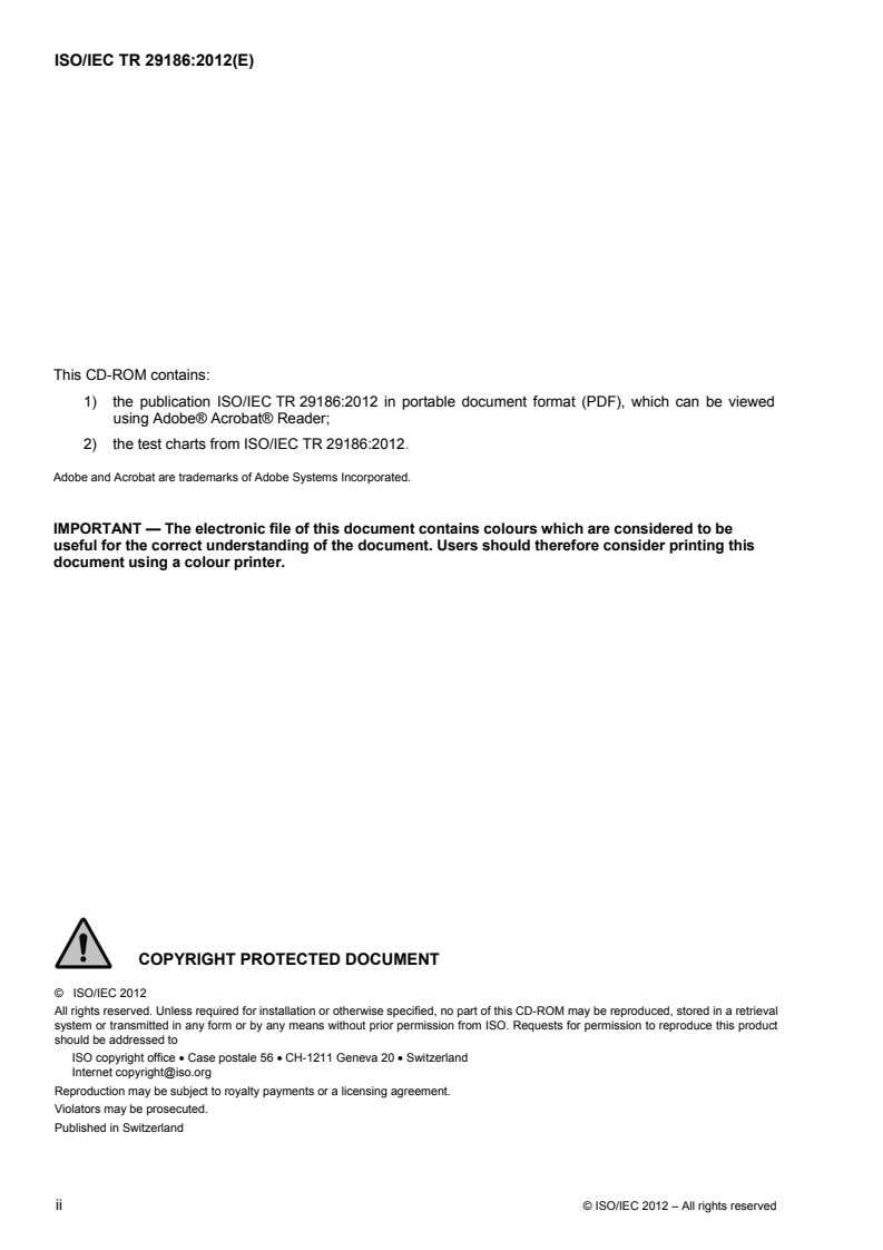 (ISO/IEC TR 29186:2012 is distributed with PDF and test-chart assets; users are encouraged to print the document in colour for correct interpretation.)