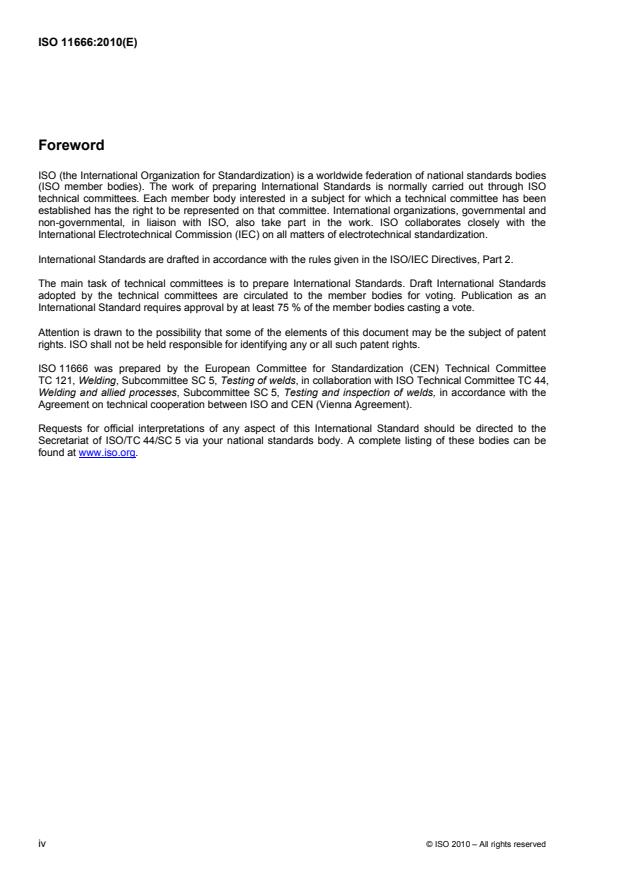 L'ISO 11666 a été élaborée par le comité technique CEN/TC 121, Soudage, sous-comité SC 5, Contrôle des