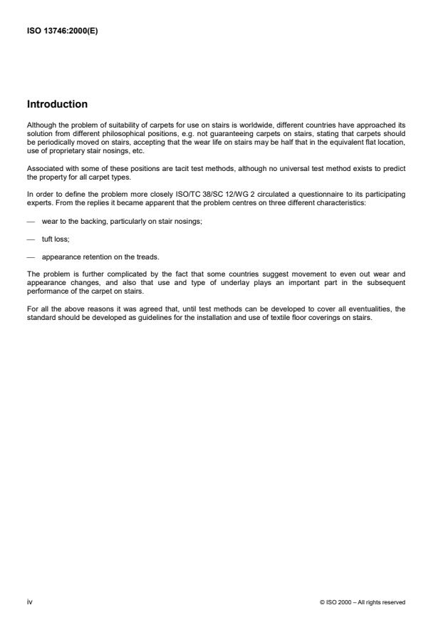 ISO 13746:2000 - Textile floor coverings -- Guidelines for installation and use on stairs