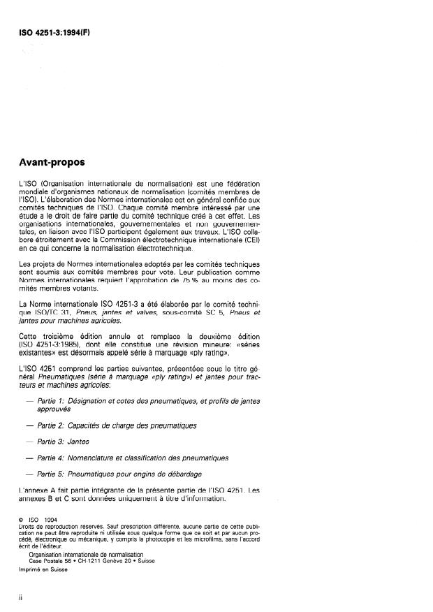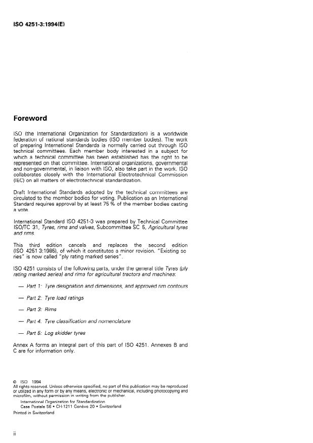 ISO 4251-3:1994 is a standard published by the International Organization for Standardization (ISO). Its full title is "Tyres (ply rating marked series) and rims for agricultural tractors and machines — Part 3: Rims". This standard covers: Cancels and replaces the second edition (1985). Sets out rim dimensions for tyres of the ply rating marked series for agricultural tractors and machines.