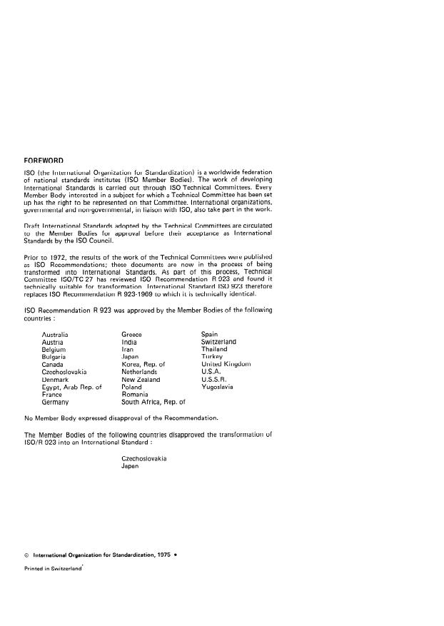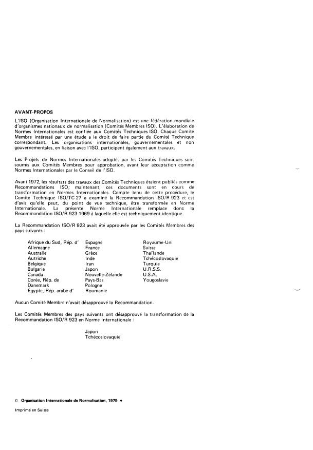 IS0 Recommendation R 923 was approved by the Member Bodies of the following