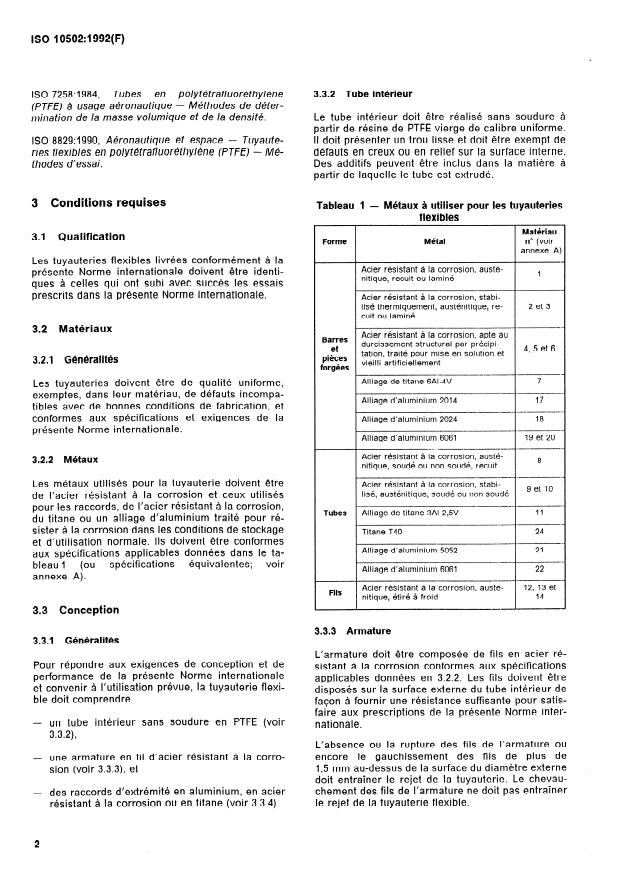 ISO 10502:1992 - Aéronautique et espace -- Tuyauteries flexibles en polytétrafluoroéthylene (PTFE), pour utilisation jusqu'a 232 degrés C et 10 500 kPa -- Spécifications d'approvisionnement
