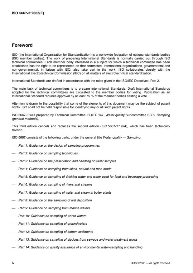 ISO 5667-3:2012 - Water quality — Sampling — Part 3: Preservation and handling of water samples - Effective Date