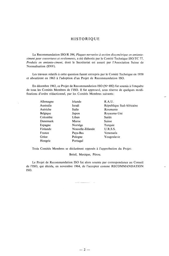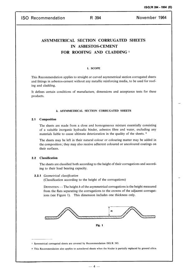 The IS0 Recommendation R 394, Asymmetrical section corrugated sheets in usbestos-