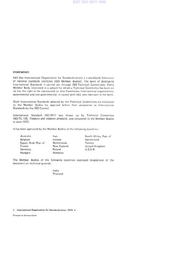 ISO 2817:1974 is classified under the following ICS (International Classification for Standards) categories: 65.160 - Tobacco, tobacco products and related equipment. The ICS classification helps identify the subject area and facilitates finding related standards.