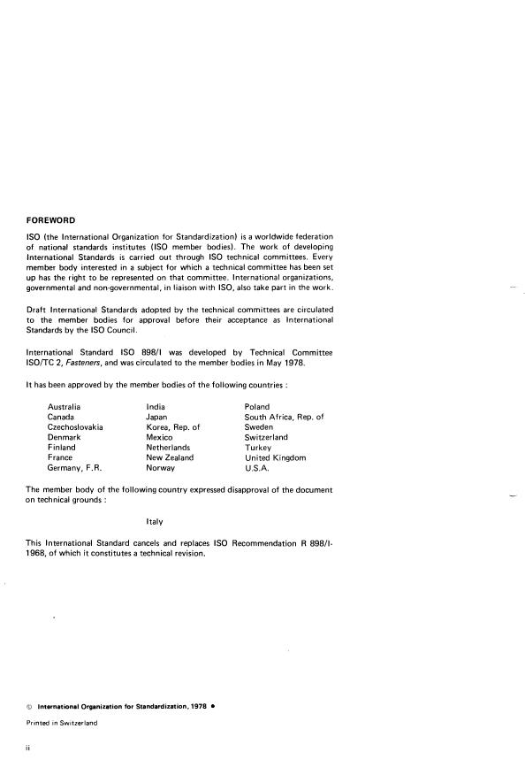 ISO 898-1:1978 - Mechanical properties of fasteners
