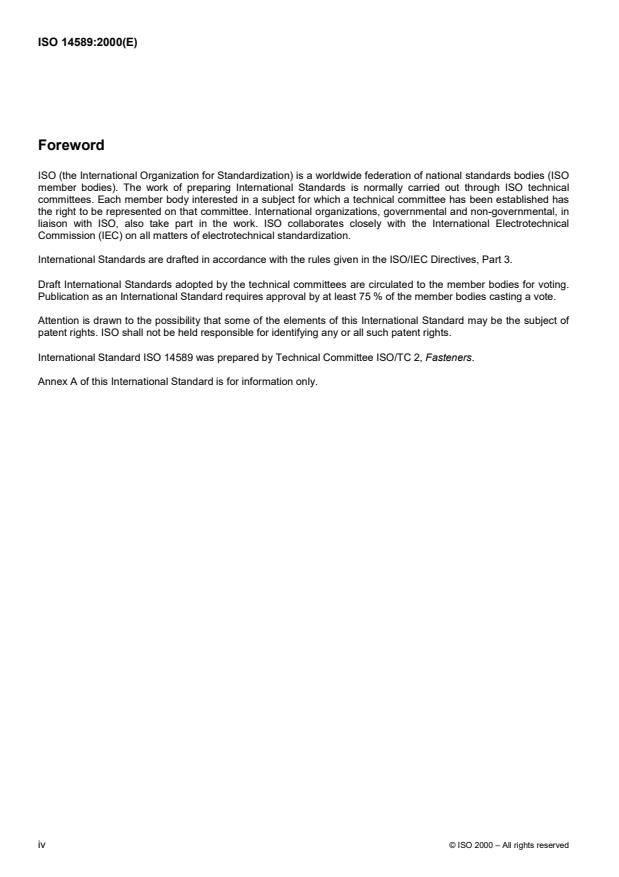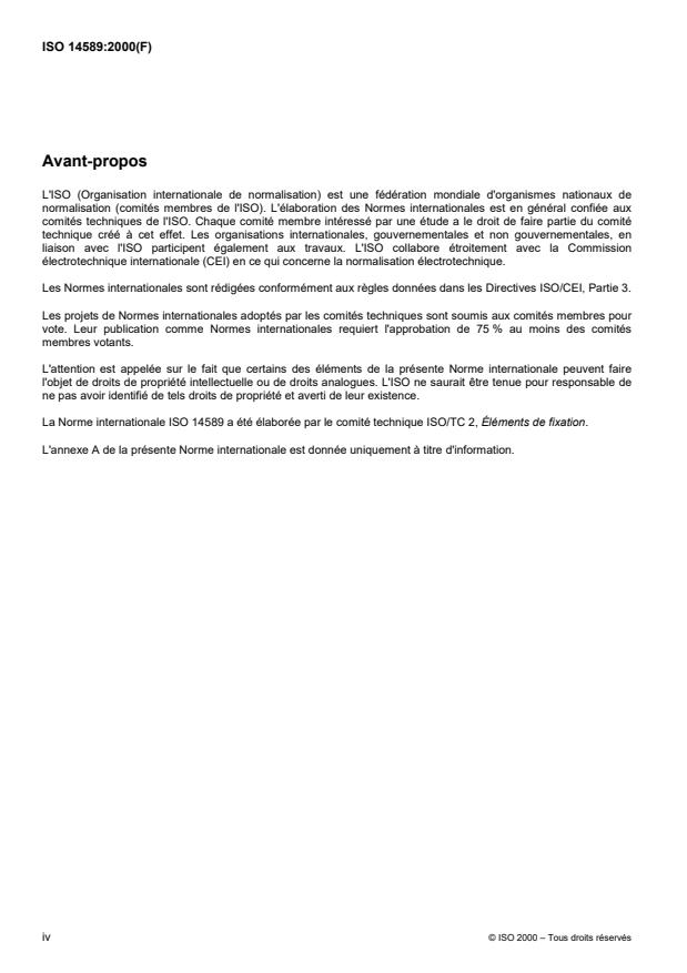 La Norme internationale ISO 14589 a étéélaboréepar le comité technique ISO/TC 2, Éléments de fixation.
