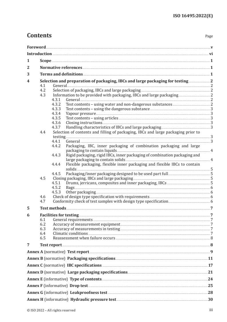 Keywords: ISO 16495:2022, packaging test methods, transport packaging for dangerous goods, IBC testing, UN packaging mark, leakproofness test, drop test, stacking test, water spray test, packaging standards.