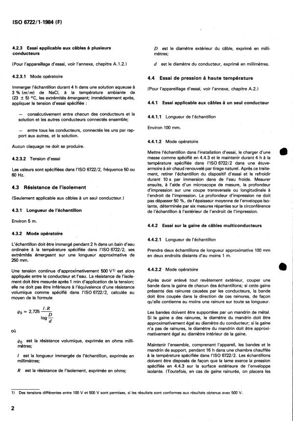 1) Des tensions différentes entre 100 V et 500 V sont permises, si les résultats sont conformes aux résultats obtenus avec 500 V.