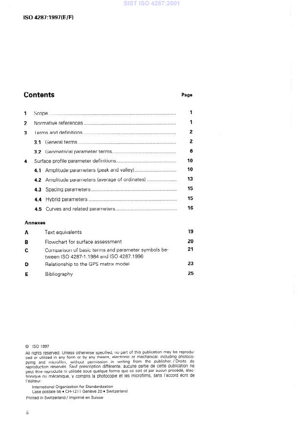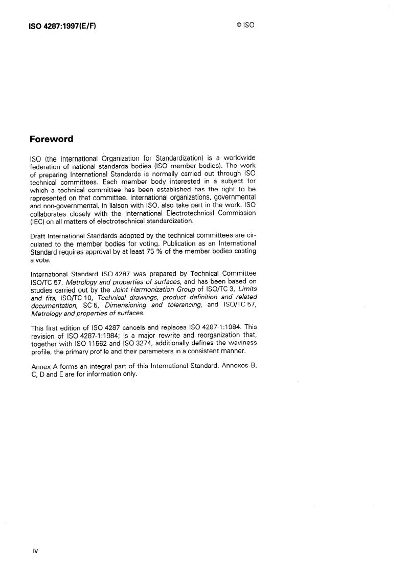 ISO 4287:1997 is a standard published by the International Organization for Standardization (ISO). Its full title is "Geometrical Product Specifications (GPS) - Surface texture: Profile method - Terms, definitions and surface texture parameters". This standard covers: Geometrical Product Specifications (GPS) - Surface texture: Profile method - Terms, definitions and surface texture parameters
