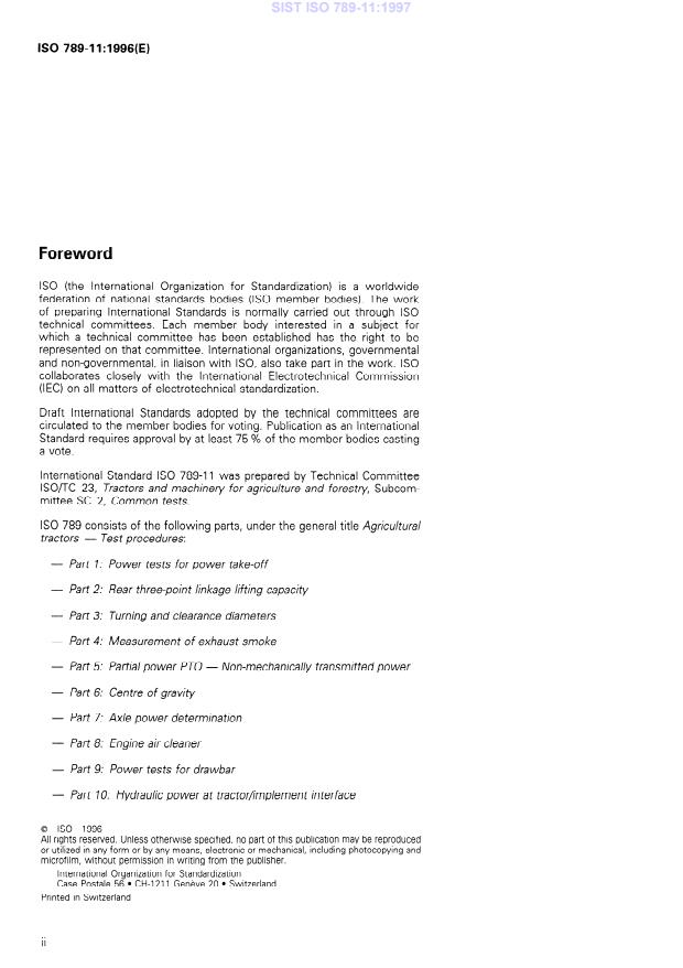 ISO 789-11 is part of a comprehensive series of standards under ISO 789 covering various aspects of agricultural tractor testing: