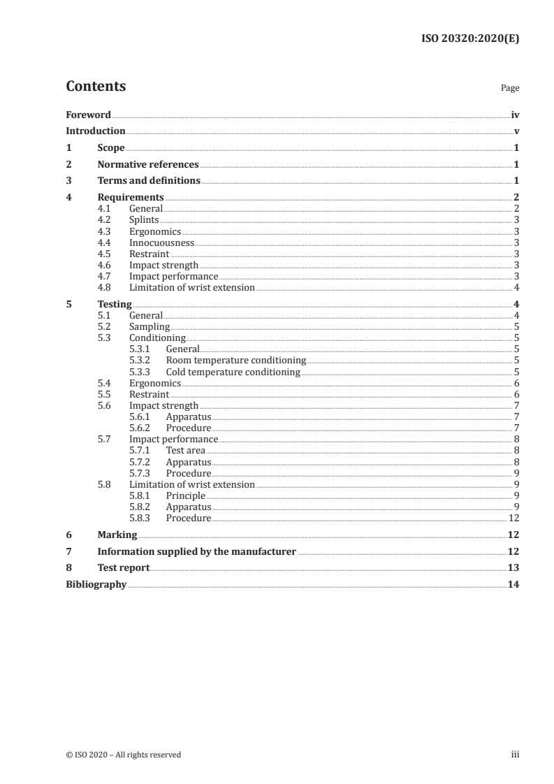Keywords: ISO 20320:2020, wrist protectors, snowboarding, wrist guard test methods, impact performance, limitation of wrist extension, splint dimensions, cold condition testing.