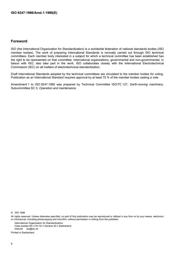 Amendment 1 to ISO 9247:1990 was prepared by Technical Committee ISO/TC 127, Earth-moving machinery,