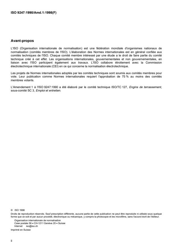 L'Amendement 1 à l'ISO 9247:1990 a été élaboré par le comité technique ISO/TC 127, Engins de terrassement,