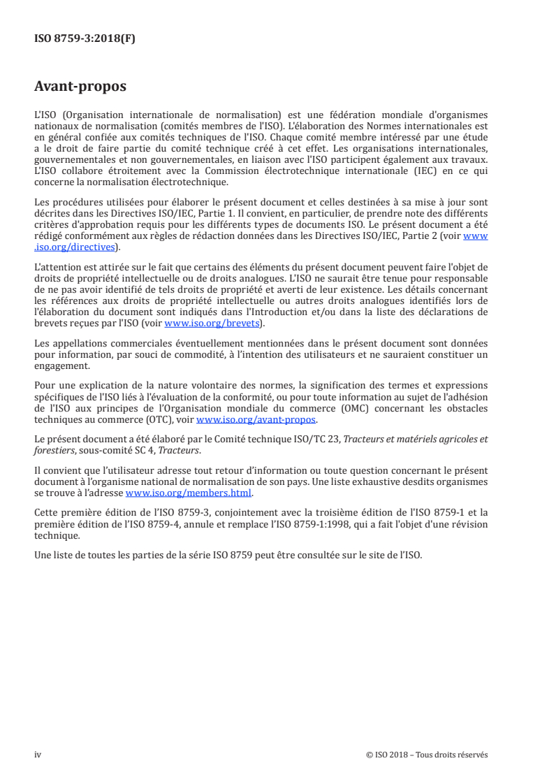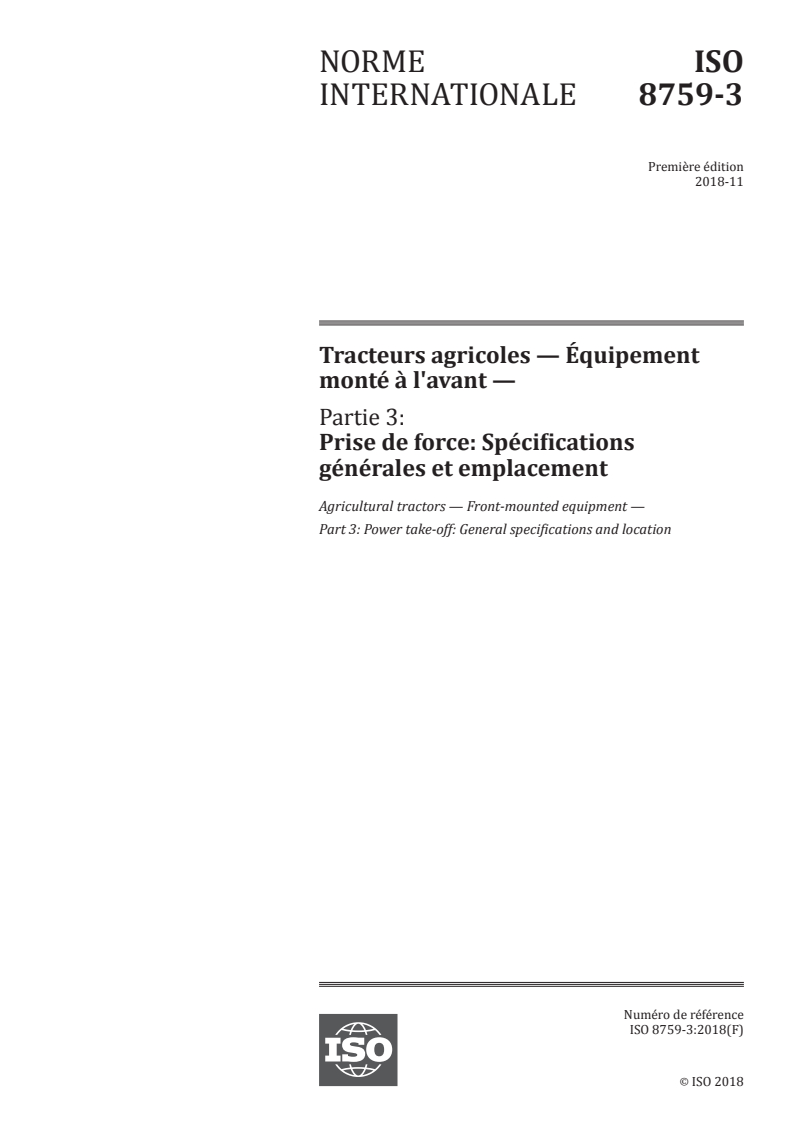 ISO 8759-3:2018 - Tracteurs agricoles -- Équipement monté a l'avant