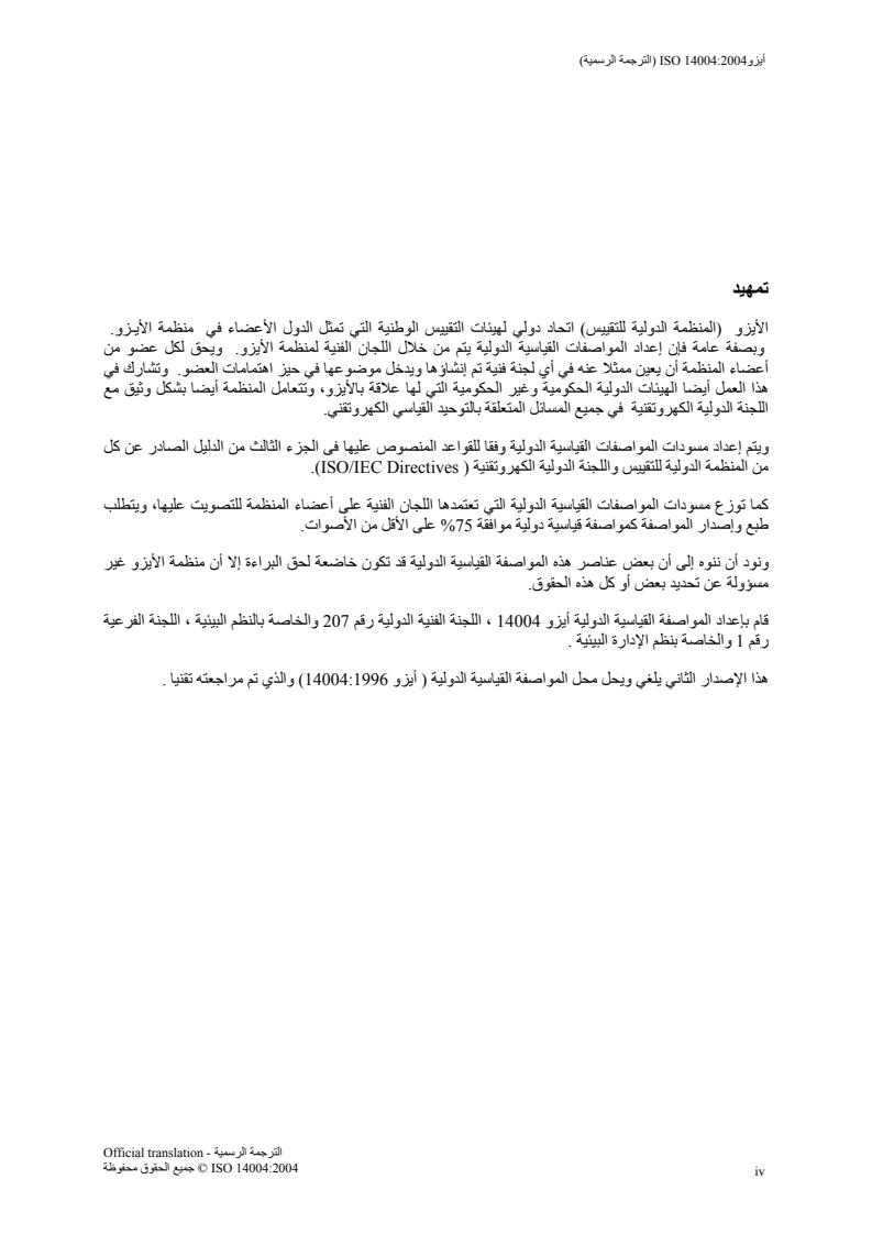 ISO 14004:2004 provides guidance on the establishment, implementation, maintenance and improvement of an environmental management system and its coordination with other management systems. The guidelines in ISO 14004:2004 are applicable to any organization, regardless of its size, type, location or level of maturity. While the guidelines in ISO 14004:2004 are consistent with the ISO 14001:2004 environmental management system model, they are not intended to provide interpretations of the requirements of ISO 14001:2004.