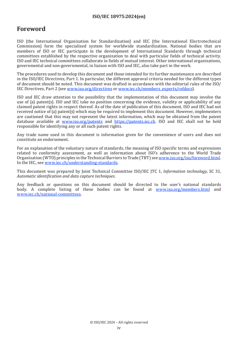 ISO/IEC 18975:2024 is classified under the following ICS (International Classification for Standards) categories: 35.040.50 - Automatic identification and data capture techniques. The ICS classification helps identify the subject area and facilitates finding related standards.