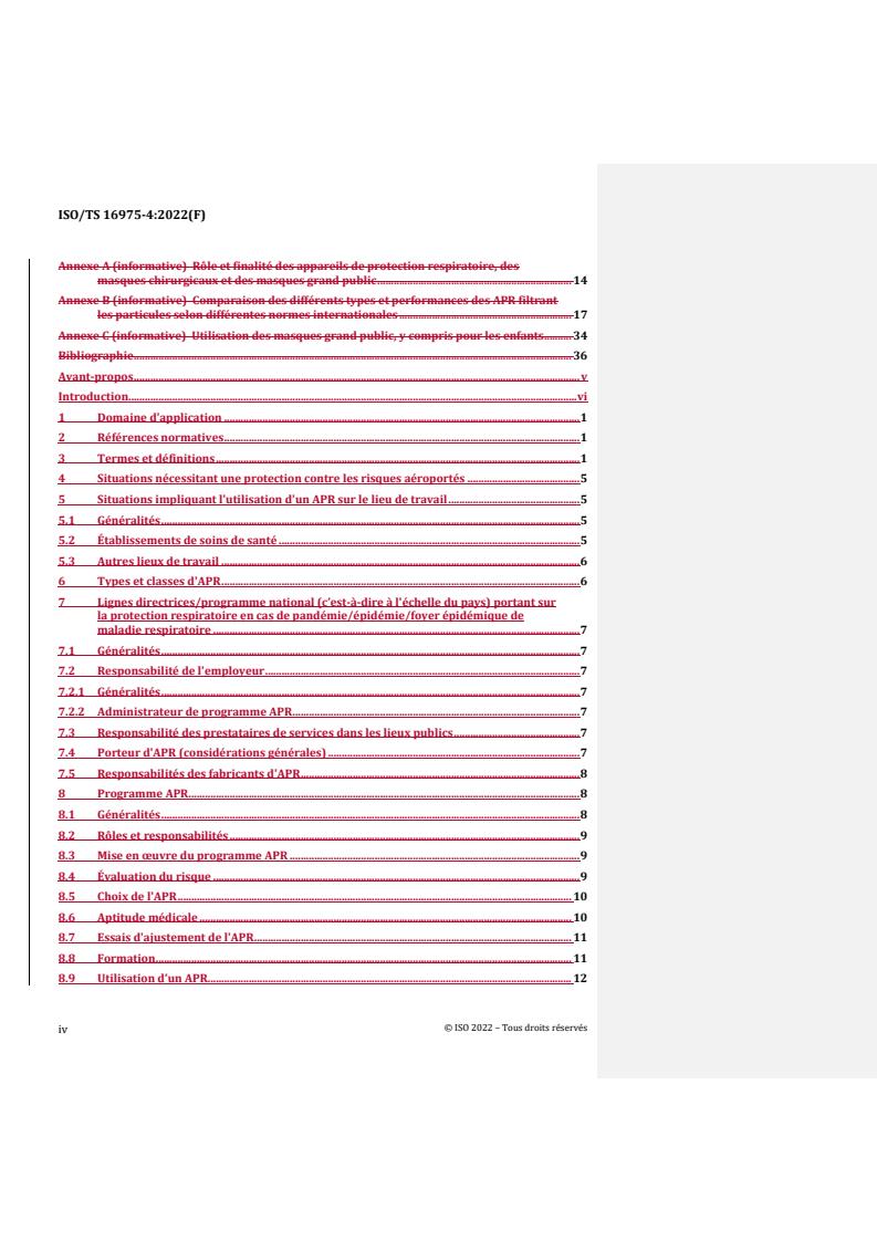 REDLINE ISO/TS 16975-4:2022 - Respiratory protective devices — Selection, use and maintenance — Part 4: Selection and usage guideline for respiratory protective devices under pandemic/epidemic/outbreak of infectious respiratory disease Released:21. 12. 2022