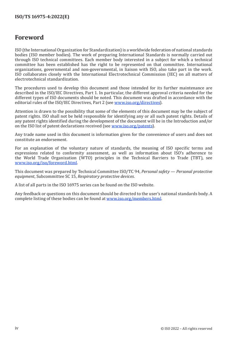 ISO/TS 16975-4:2022 - Respiratory protective devices — Selection, use and maintenance — Part 4: Selection and usage guideline for respiratory protective devices under pandemic/epidemic/outbreak of infectious respiratory disease Released:21. 12. 2022