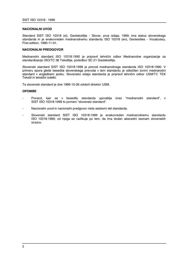 Standard SIST ISO 10318 (sl), Geotekstilije - Slovar, prva izdaja, 1999, ima status slovenskega