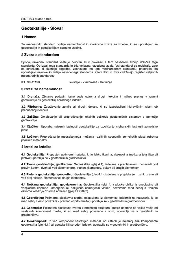 standarda in je enakovreden mednarodnemu standardu ISO 10318 (en), Geotextiles - Vocabulary,