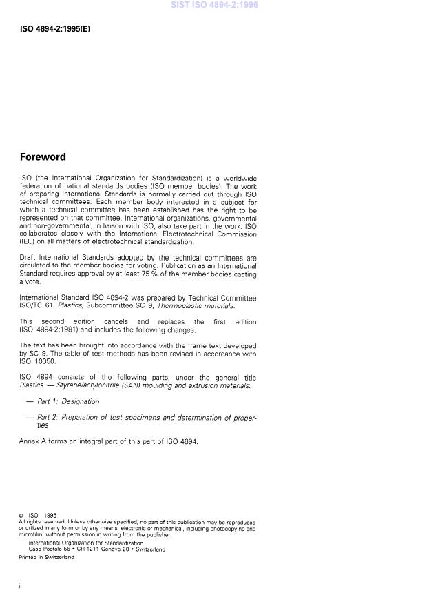 ISO 4894-2:1995 - Plastics -- Styrene/acrylonitrile (SAN) moulding and extrusion materials