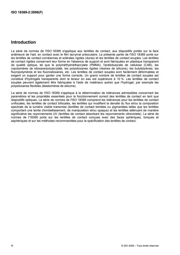 L'ISO 18369-2:2006 spécifie les limites de tolérance des principaux paramètres optiques et physiques des lentilles de contact rigides, souples et sclérales rigides.