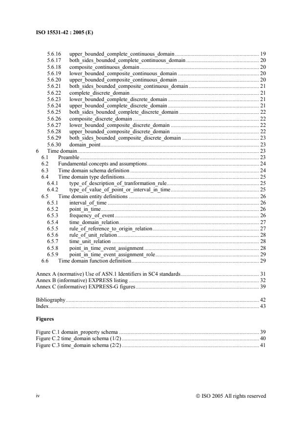 ISO 15531-42:2005 is a standard published by the International Organization for Standardization (ISO). Its full title is "Industrial automation systems and integration - Industrial manufacturing management data - Part 42: Time Model". This standard covers: ISO 15531-42:2005 specifies a generic framework for the description of topological properties applicable to a wide range of one dimension domains. Developments made in ISO 15531-42:2005 are focused on the time domain, thus providing a universal, self consistent model, independent of any event that may occur, or has already occurred, at a given point in time. The time model specified in ISO 15531-42:2005 enables any software application to provide an accurate time reference to any related event or sequence of events, whether in the past, in the present or in the future. This time model may be used by any application that needs to reference events, actions or sequences of action linked to time or intervals of time simultaneously. According to this, the scope of ISO 15531-42:2005 includes the following: the description of the topological properties of an one dimension domain; the description of the time model and of the related definitions; the EXPRESS definitions of entities, attributes and schemas as prescribed in ISO 10303-11 (the reference manual of the EXPRESS language); the EXPRESS-G diagrams of the model as prescribed in ISO 10303-11.