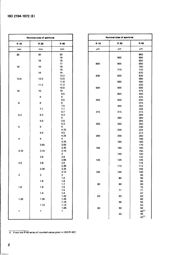 ISO 2194:1972 - Wire screens and plate screens for industrial purposes -- Nominal sizes of apertures