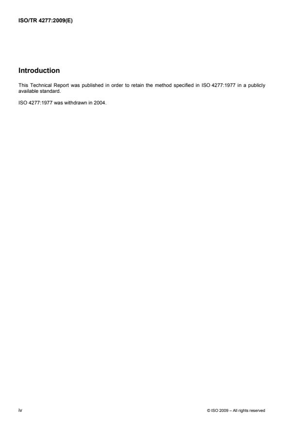 This Technical Report was published in order to retain the method specified in ISO 4277:1977 in a publicly