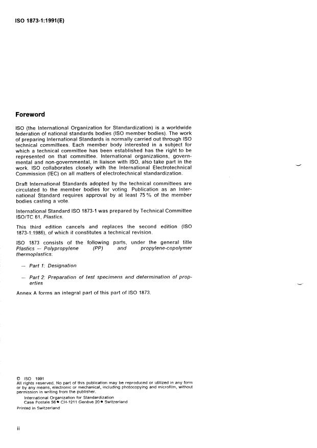 ISO 1873-1:1991 - Plastics -- Polypropylene (PP) and propylene-copolymer thermoplastics