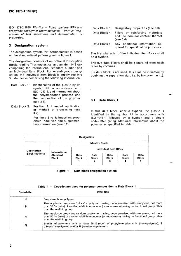 ISO 1873-1:1991 - Plastics — Polypropylene (PP) and propylene-copolymer thermoplastics — Part 1: Designation Released:7/11/1991