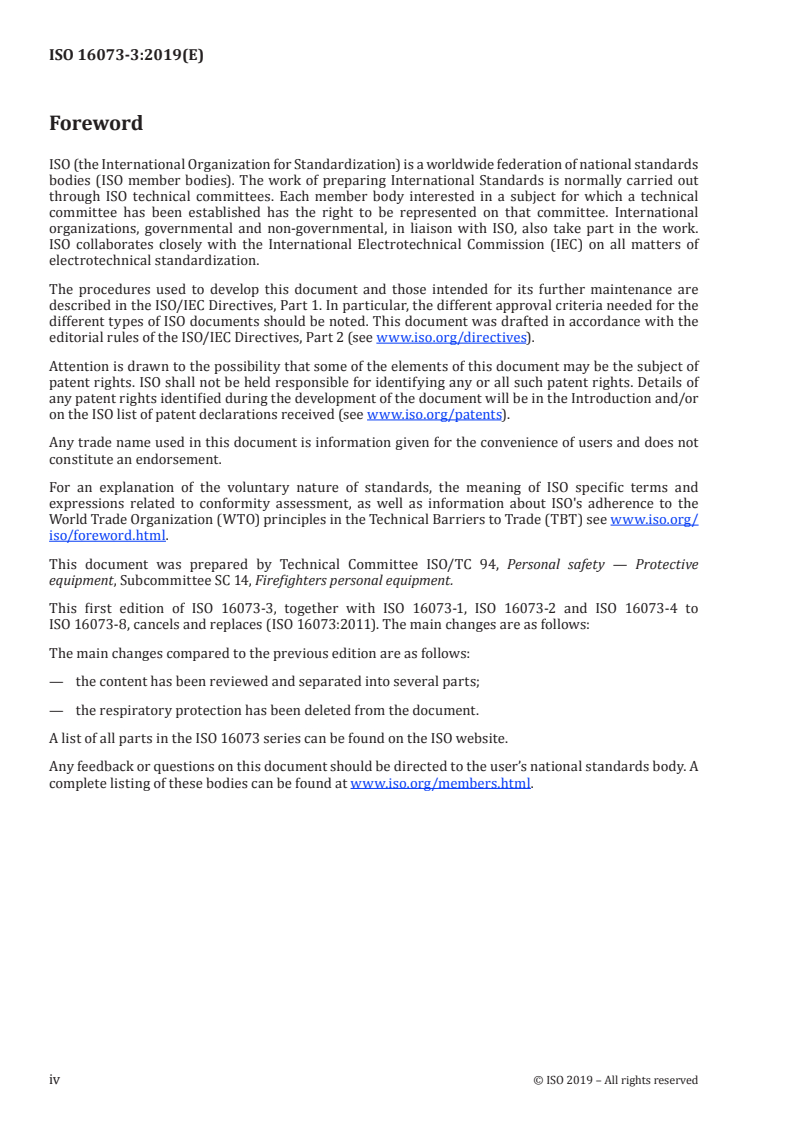 ISO 16073-3:2019 - Wildland firefighting personal protective equipment -- Requirements and test methods