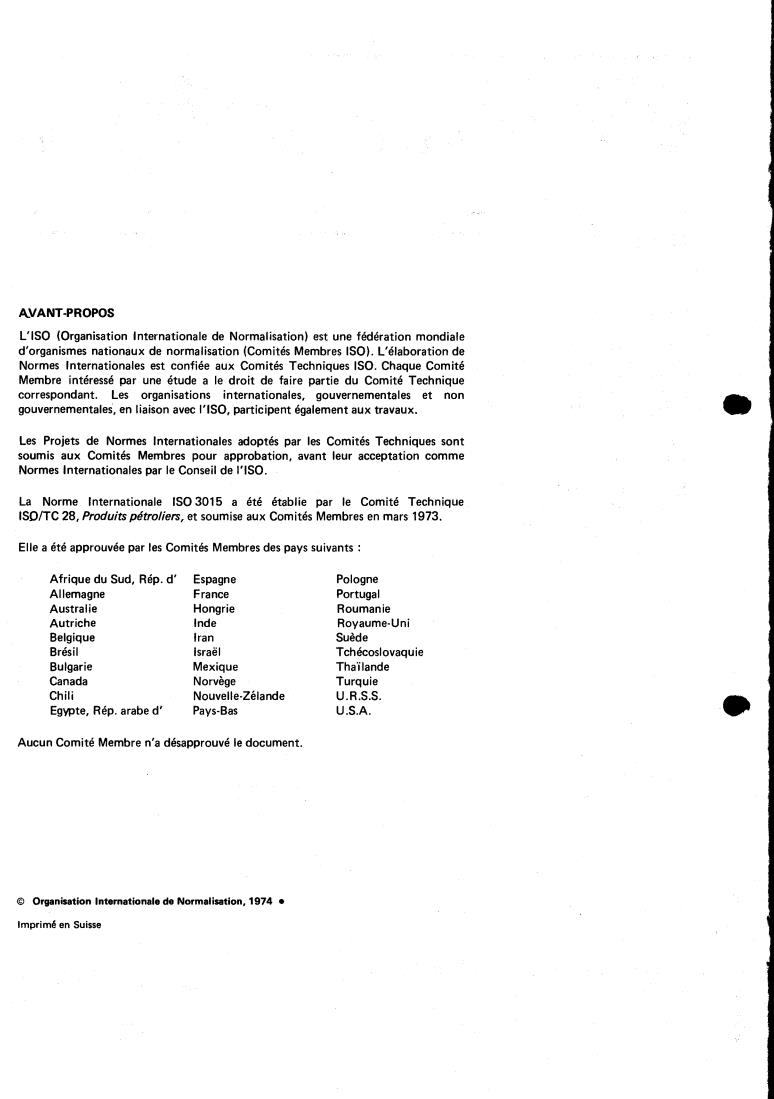 UDC 665.7.035.2 Ref. No. IS0 3015-1974 (E)