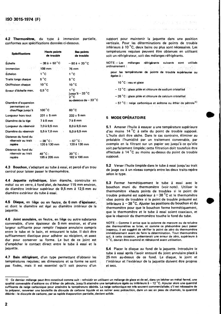 de cristaux de paraffine, lorsque l'essai est effectué dans des et inférieur tolérés, c'est-à-dire à I3 mm du niveau de