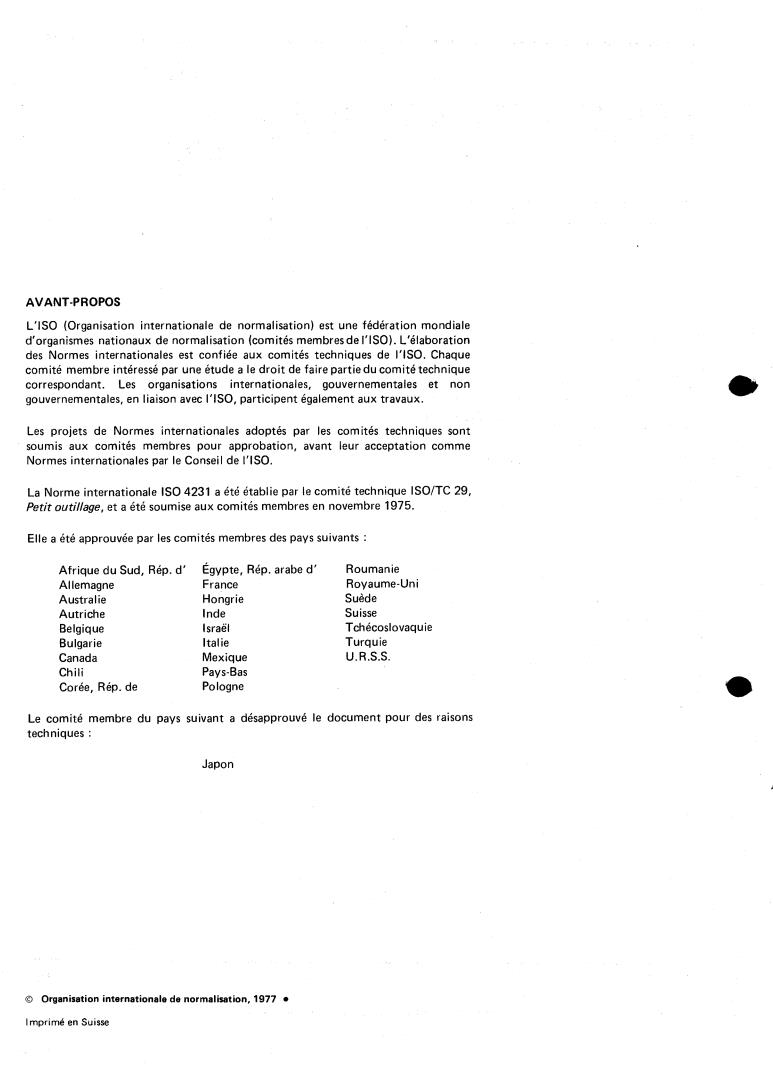 La Norme internationale IS0 4231 a été établie par le comité technique ISO/TC 29,