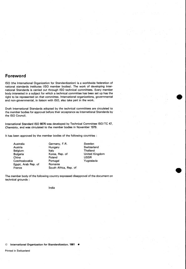 International Standard IS0 6676 was developed by Technical Committee ISO/TC 47,
