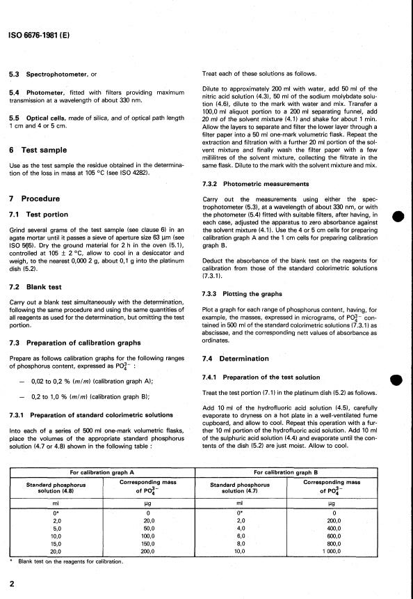ISO 6676:1981 - Acid-grade fluorspar — Determination of total phosphorus content — Molybdophosphate photometric method Released:11/1/1981