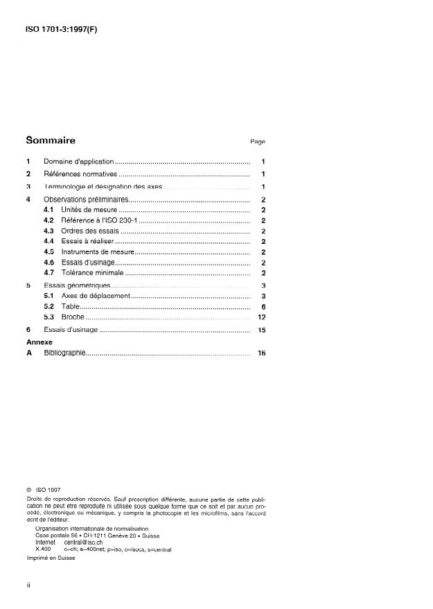 ISO 1701-0:1984 l>, Conditions de réception des machines à fraiser à table à hauteur variable, à broche