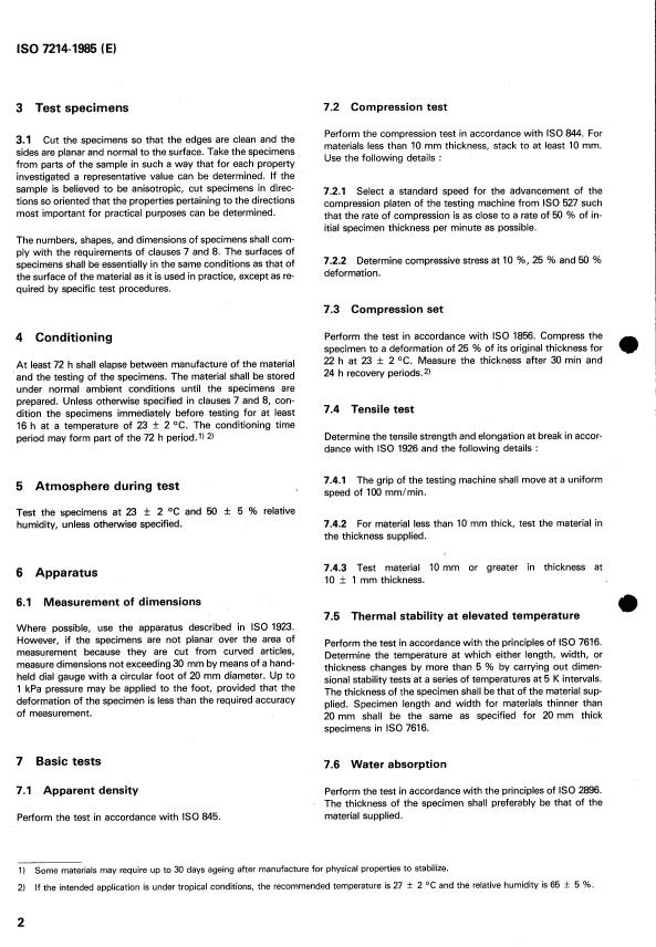 ISO 7214:1985 - Cellular plastics — Polyethylene — Methods of test Released:1/31/1985