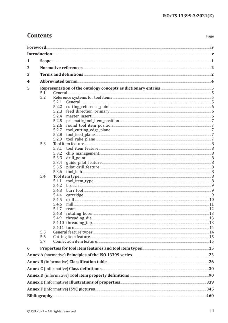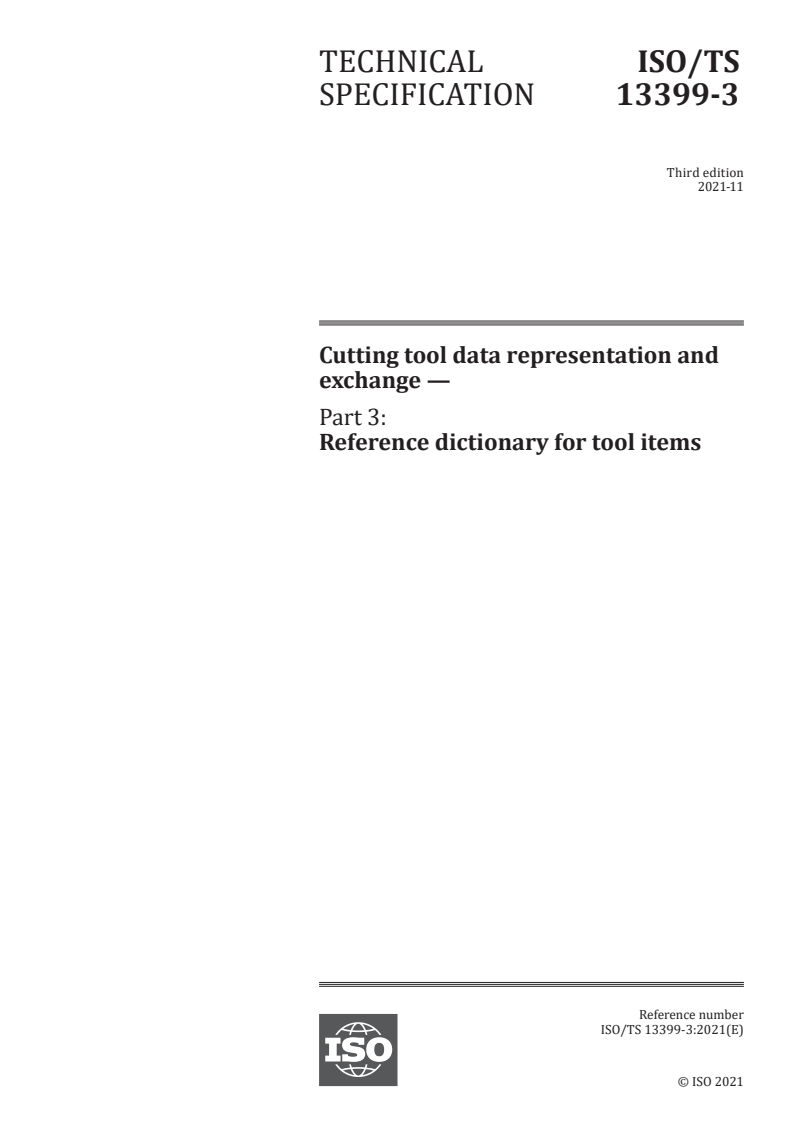 ISO/TS 13399-3:2021 - Cutting tool data representation and exchange — Part 3: Reference dictionary for tool items Released:11/22/2021