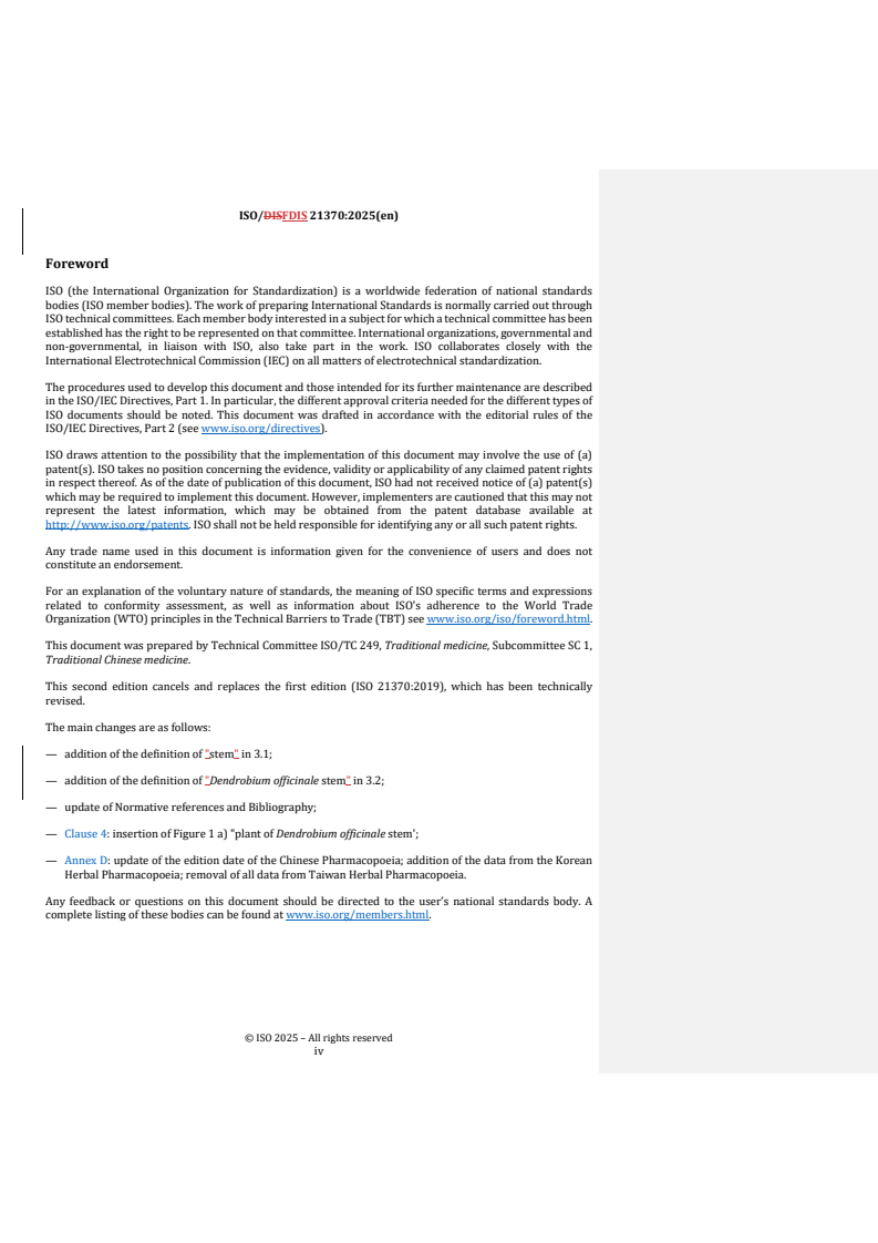 ISO/FDIS 21370 - Traditional Chinese medicine — Dendrobium officinale stem Released:10/10/2025