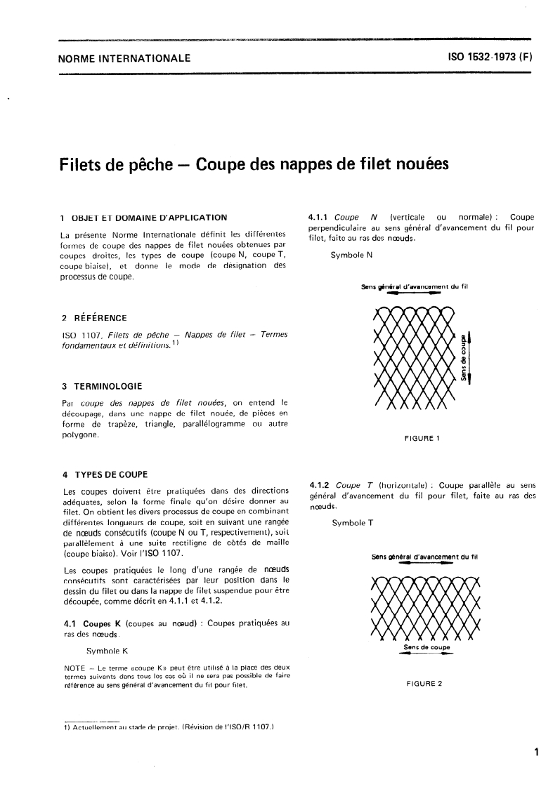 ISO 1532:1973 - Filets de pêche — Coupe des nappes de filet nouées/1/1973
