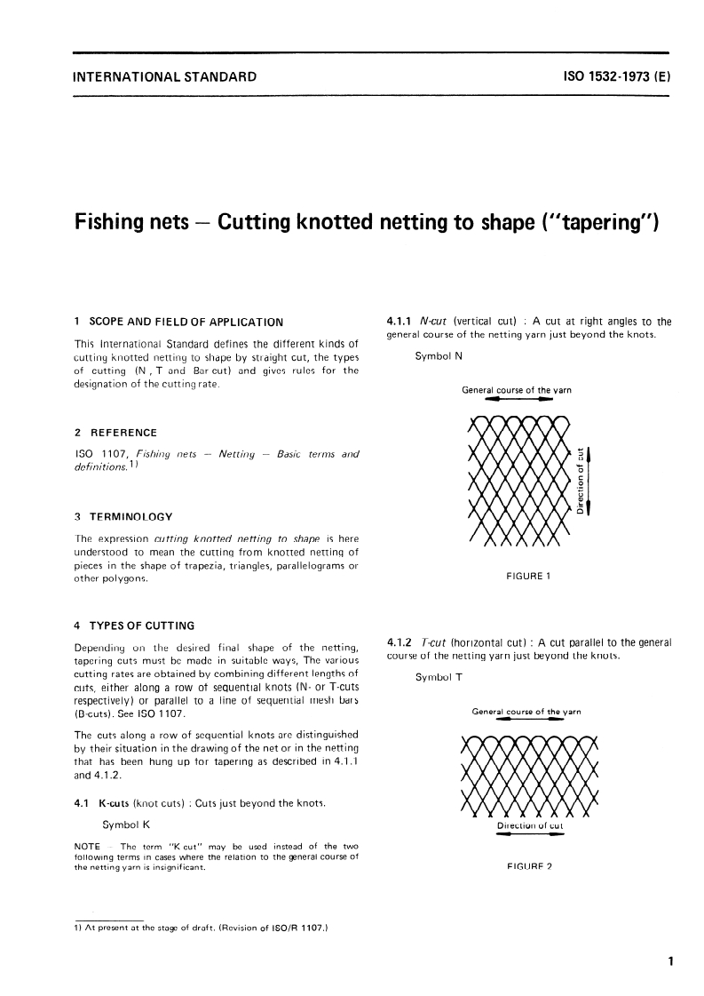 ISO 1532:1973 - Fishing nets — Cutting knotted netting to shape ("tapering")/1/1973