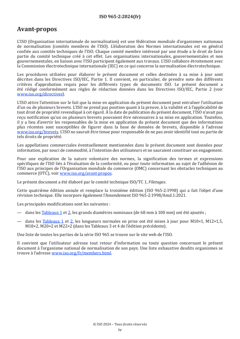 Cette quatrième édition annule et remplace la troisième édition (ISO 965-2:1998) qui a fait l’objet d’une