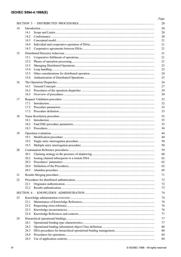 ISO/IEC 9594-4:1998 is a standard published by the International Organization for Standardization (ISO). Its full title is "Information technology — Open Systems Interconnection — The Directory: Procedures for distributed operation — Part 4:". This standard covers: Information technology — Open Systems Interconnection — The Directory: Procedures for distributed operation — Part 4: